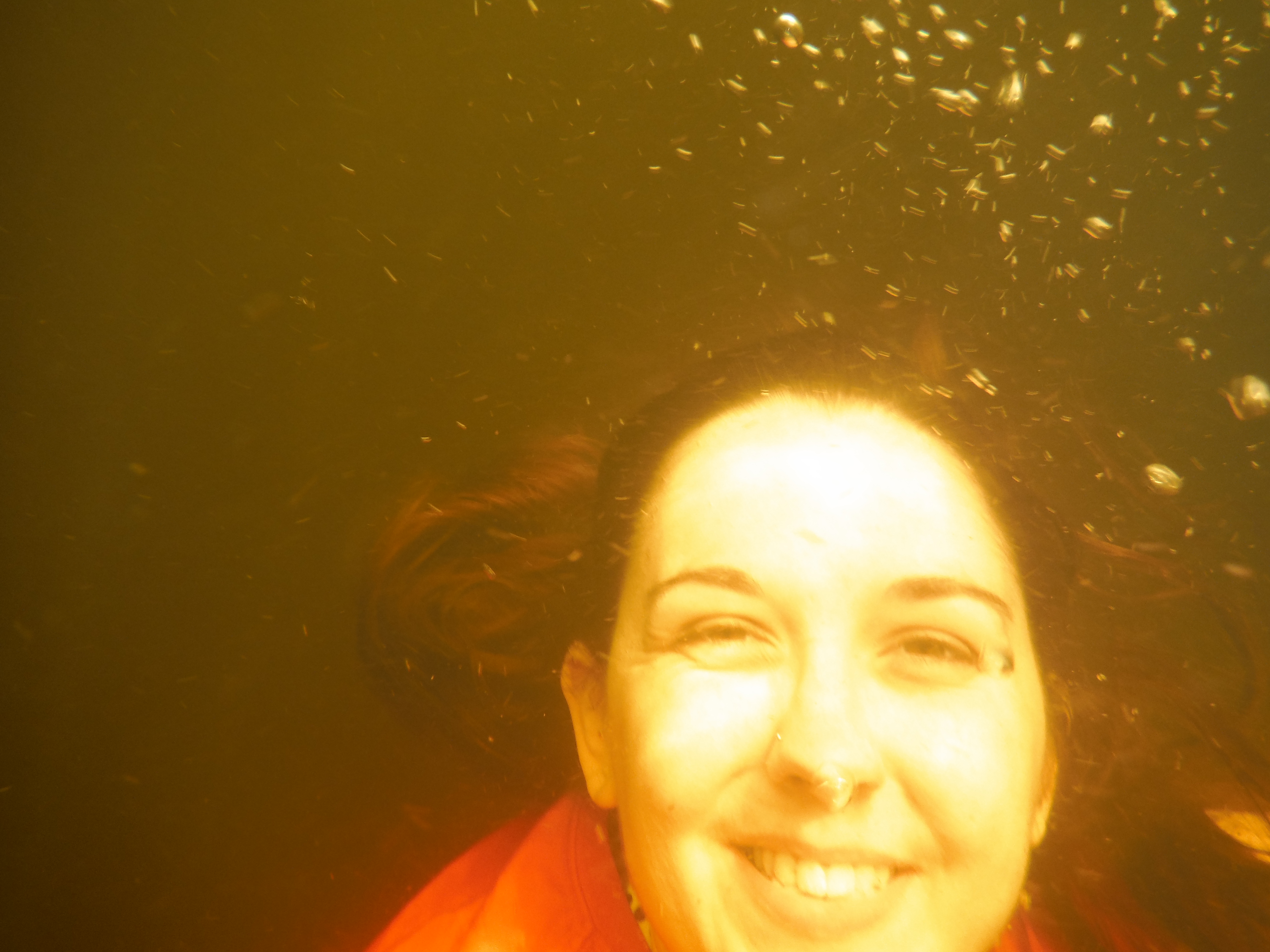 Instead I drove further down the road and parked just outside Outgate. There’s a lovely path from there (would definitely recommend it) down to Blelham Tarn. This is another really beautiful place that I’d never been to before. Part of this challenge is about discovering new places and today felt like a great example of that. It’s very, very marshy all around this tarn so I had to leave my stuff a little way off and just wade towards it. It’s very reedy and rushy all around as well so I had to make my way through that. I couldn’t walk around (fence in the way) so decided to just do a circle again. I thought it would be a gentle slope into the water because of the marshy surround, but no such thing. Not only was it pretty deep at the edge, but the build up of silt on the bottom was so deep that my leg sunk straight into it up to the thigh! This, of course, stirred up loads of gas bubbles… and oh, my dears, the smell! It was such a lovely swim though (wetsuit on this time) and if it hadn’t been getting late I think I might have swum around for a bit longer. I shared the tarn with a cormorant and a heron as well as a pair of unusual-looking ducks and the sun even poked its head out for a few minutes. Felt very calm and tranquil.