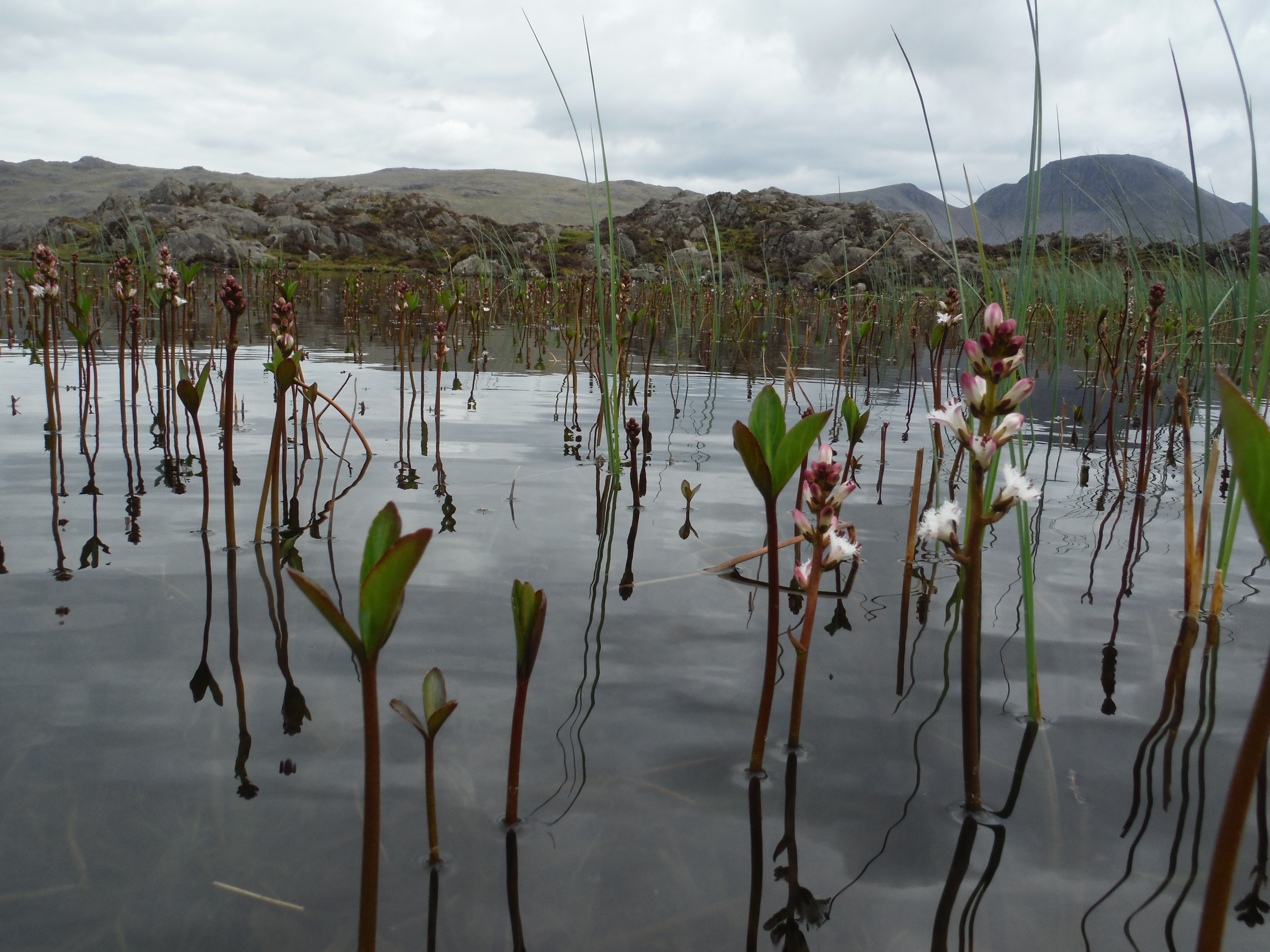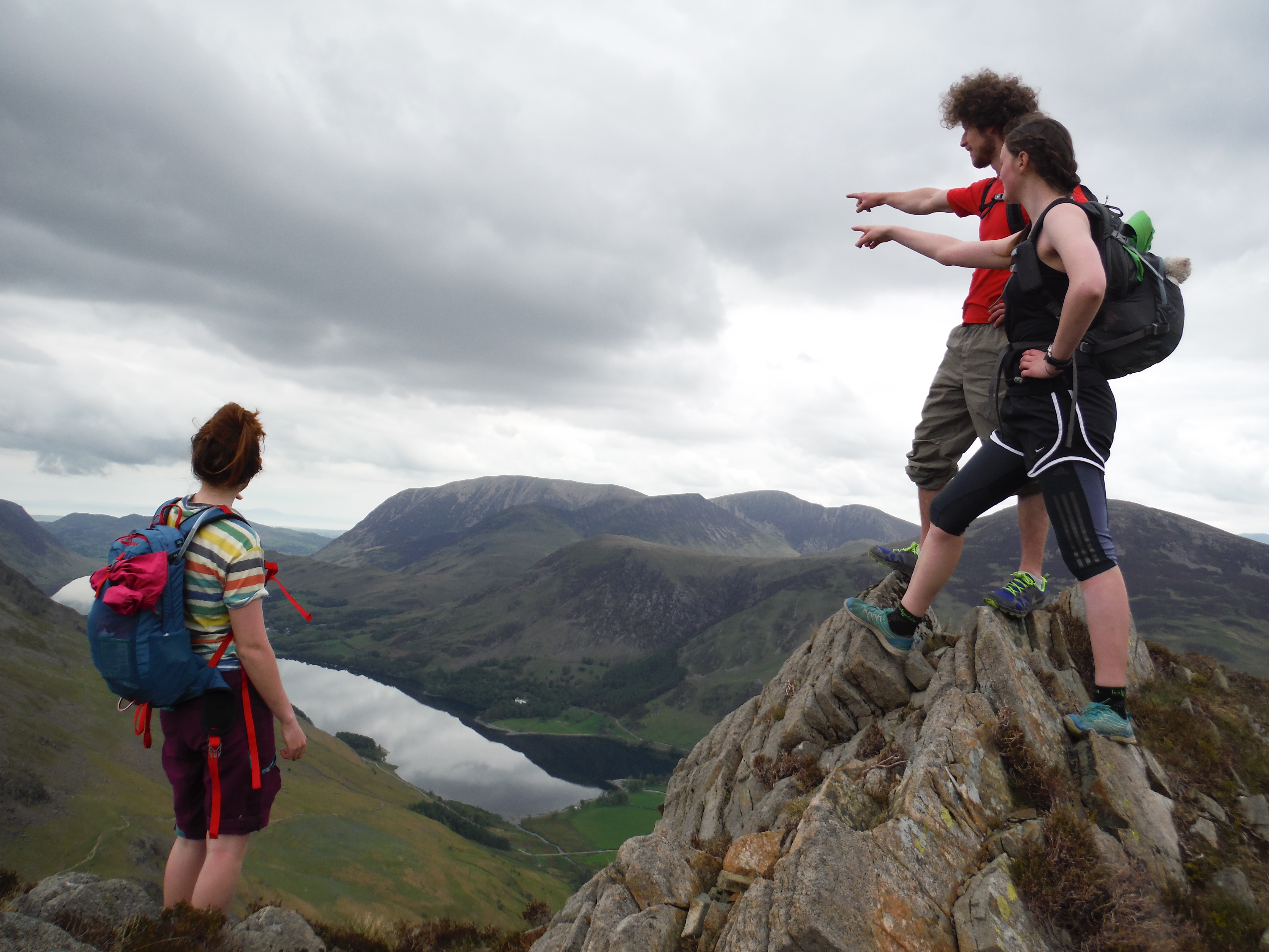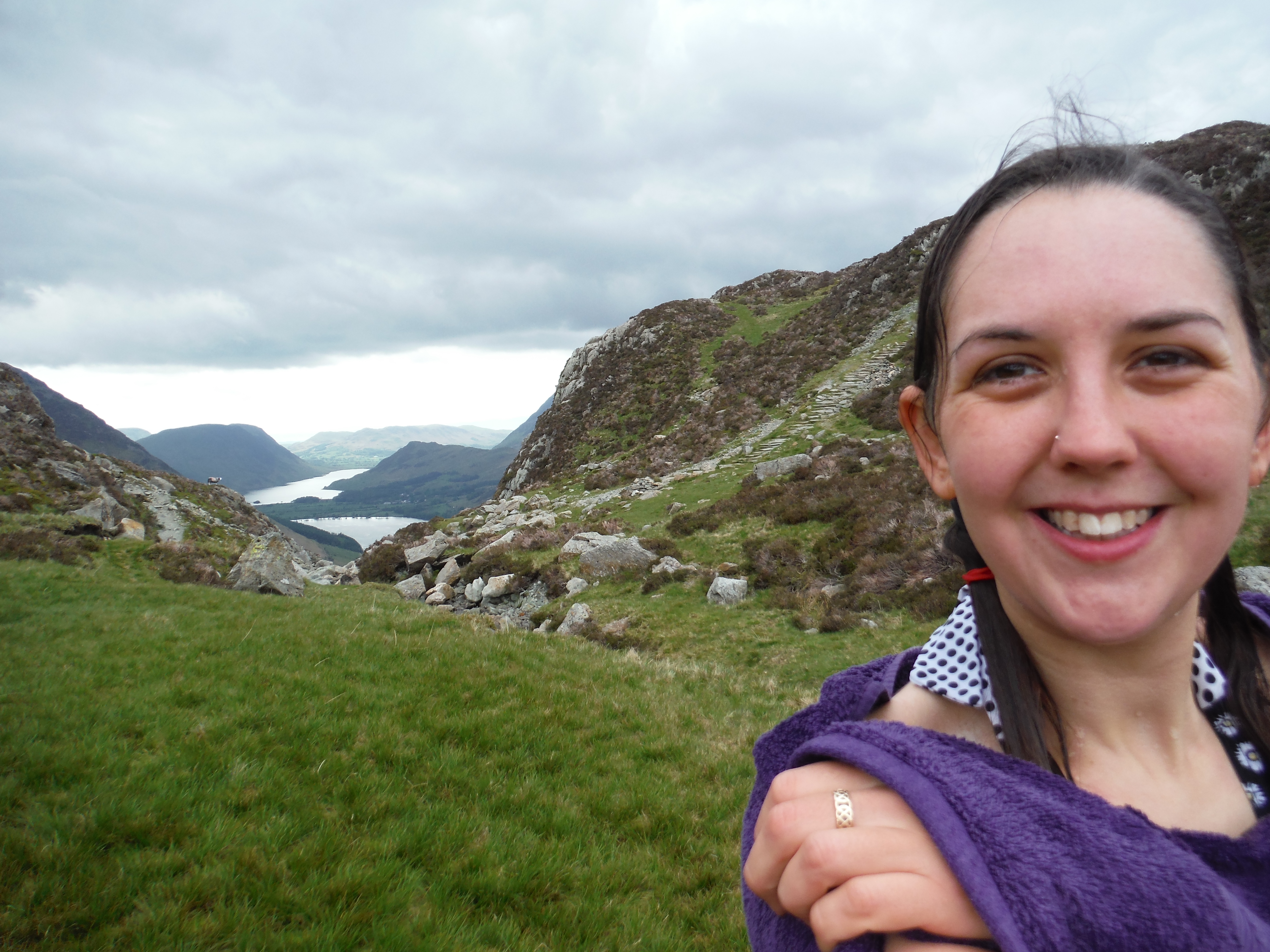 9 June. Two unplanned swims today! Went for a walk up Haystacks with Amy, Tess and Arthur and realised when I was looking at the map that there are 2 tarns up near the top – Innominate Tarn and Blackbeck Tarn. So I took my swimming stuff with me and had 2 lovely swims. We started at Buttermere village and walked along the side of the lake before starting off up Haystacks which was really nice – a few little scrambley bits and great views back to Buttermere and Crummock Water. Innomintate Tarn is a little way beyond the summit. Tess carried my towel around, Amy my shoes and Arthur my massive, heavy rucksack – a fair division of labour (or so Amy and Tess tell me). I started among some flowery plants which was very pretty but once again found myself sinking knee-deep in sediment. This made it pretty difficult to walk in, but I finally got to a point where I could swim – although I could still feel my knees scraping the top of the sediment layer for most of the way! It was good, but it’s too shallow really for a proper swim.