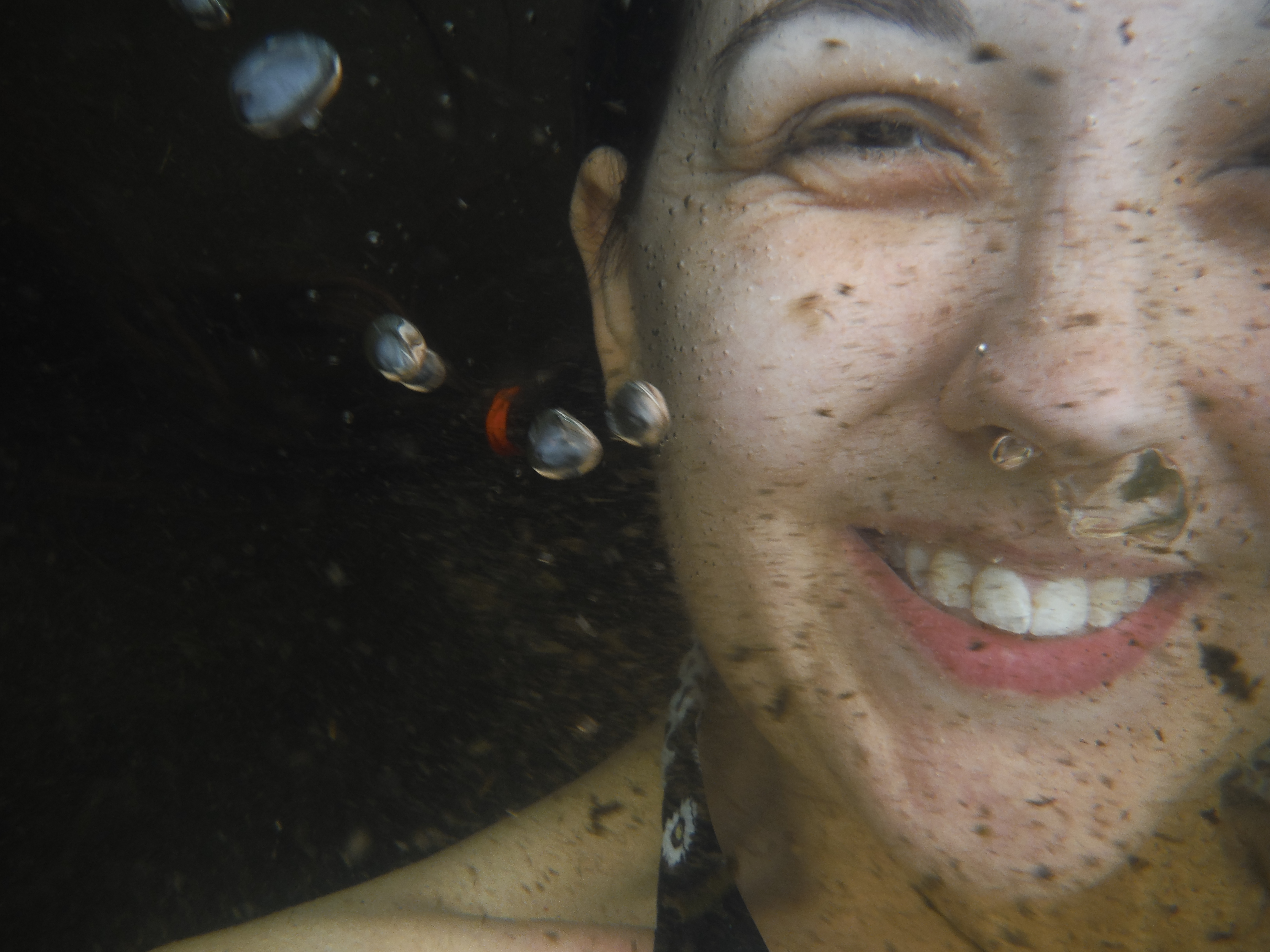 I stayed in my swimming stuff while we walked to Blackbeck Tarn as it’s only a few minutes walk. I must’ve looked pretty odd wandering around on the top of Haystacks wearing soaking wet shorts and bikini top and wetshoes with a towel around my shoulders! Blackbeck Tarn was a bit bigger so more of a swim. I went to the far end and once again got in among the plants. I knew nothing of deep sediment until now! The water was less than a foot deep but the sediment was so deep that I was up to the tops of my thighs. So, so hard to walk and with every step I was bringing up loads of thick, dark mud on my knees! Eventually I just threw myself forwards and sort of crocodile-walked until it was deep enough to swim properly. Once I got away from all that and it got a bit deeper though, this was a really lovely swim. It’s rocky at the end closest to the path, so much easier to walk in and out. The water wasn’t too cold and there was enough space to have a proper swim.