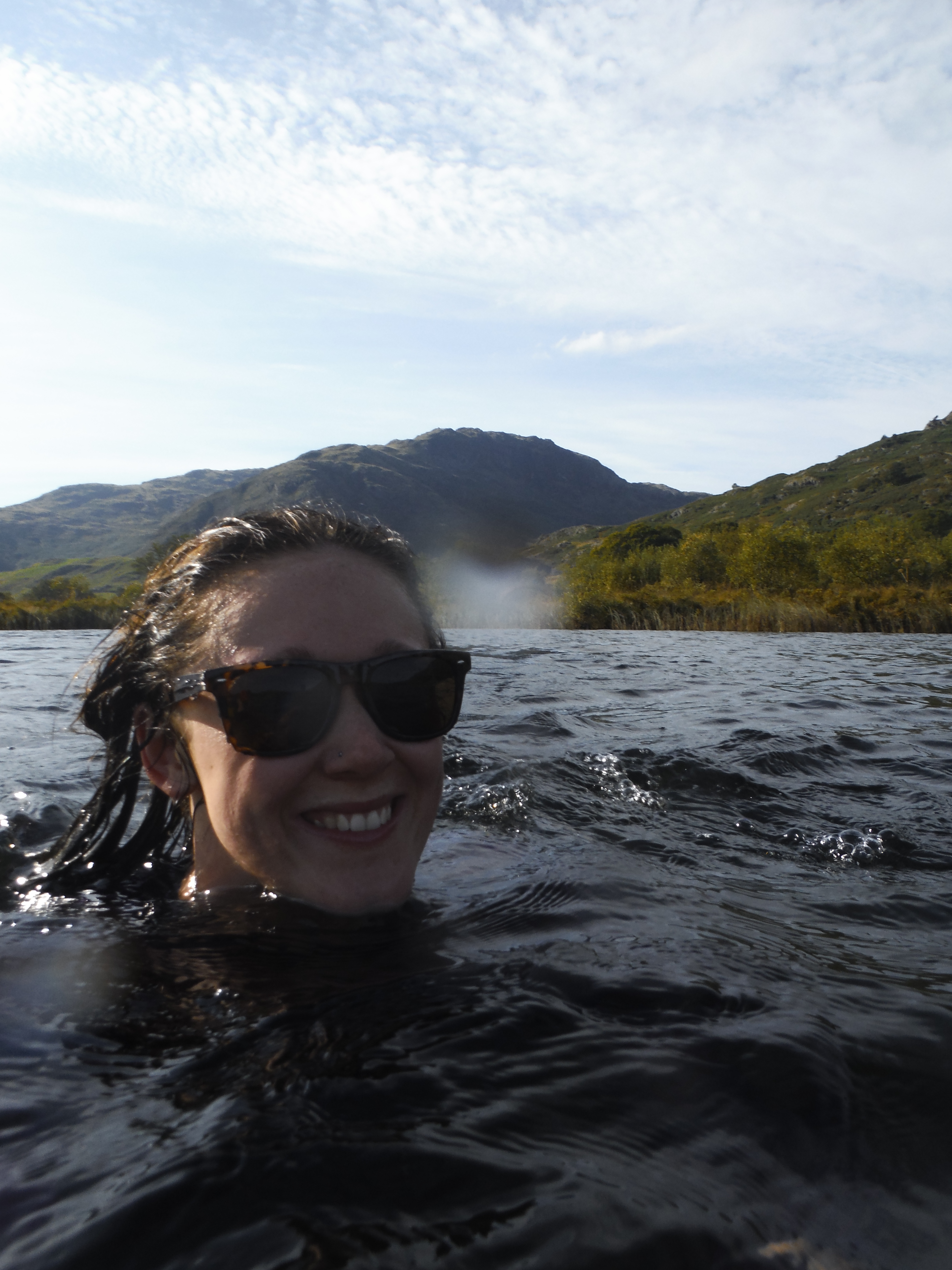 Hannah and I set off over Hartside, windows down and music on and had to stop at the top to take pictures of the view over to the Lakes. I’ve rarely seen it so clear, it was stunning. It’s a pretty long drive over to Little Langdale but it was totally worth it. It was wonderfully warm as we walked down the little path towards the tarn and a resolution started to form in my mind. I had my wetsuit with me but it was so sunny and warm… Little Langdale Tarn isn’t huge by any means but it’s biggish for a tarn. I knew the water would be cold but there’s something about swimming without a wetsuit – it feels different, you’re more a part of the water, more connected to it.